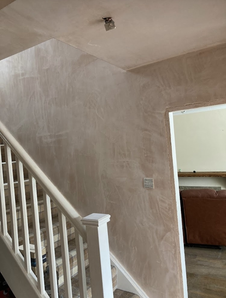 Skimming is where a finishing plaster is applied smoothly onto the prepared surface behind it. The drying process usually takes 3 days up to a week and is ready for painting when it goes pale pink. When carrying out a skimming task, mess will always be kept down to an absolute minimum, two coats of plaster will always be used as is specified on the bag and the skimming work will always be finished to an extremely high standard.
